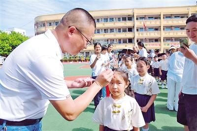 排隊入校 昨日上午,賴店中心小學舉行“啟智增慧·明禮啟航”新生入學儀式,通過一系列莊重而溫馨的環(huán)節(jié),引導一年級新生在感受中華傳統(tǒng)文化魅力的同時,樹立尊師孝親、崇德立志的價值觀。 開筆破蒙,知文崇禮。“開筆禮”上,孩子們先“正衣冠”,以整潔端正的形象迎接新階段的學習生活。再行“拜師禮”,一年級新生向教師行拜師禮,教師們鞠躬還禮。“朱砂啟智”,則寄托了對學生們眼明心明、勤奮讀書的殷切期望。隨后,校領導擊鼓啟蒙,鏗鏘鼓聲象征著新征程的開啟,也傳遞出學校對新生真誠的祝賀與鼓勵。 儀式結束后,孩子們回到布置一新的教室,認識老師、結交同學,溫馨和諧的班級氛圍撲面而來。行為習慣課程也同步進行,教師通過“頭正肩平挺起胸,雙腿并排腳放平”等朗朗上口的口令,幫助孩子們掌握規(guī)范的課堂行為,培養(yǎng)專注有序的學習習慣。本次活動不僅弘揚了傳統(tǒng)文化,更將禮儀教育與習慣養(yǎng)成融入校園日常,為新學期營造了良好的氛圍,也為孩子們的全面成長奠定基礎。 |